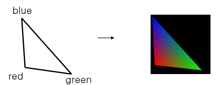 vertex shader로부터 전달 받은 정점들의 색을 보간하여 픽셀을 채워줌.(Gouraud Shading)