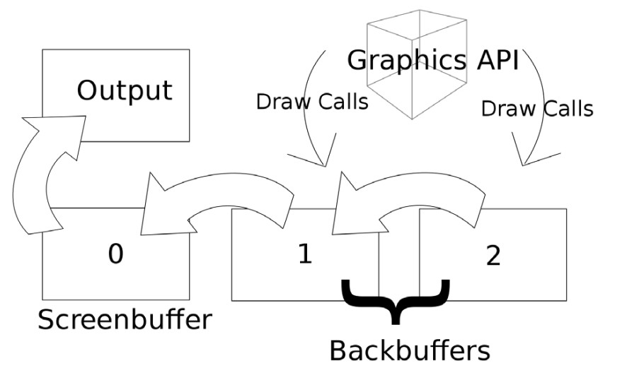 - 백 버퍼가 렌더링 되고 있을 때, 프론트 버퍼가 화면에 보여진다.
