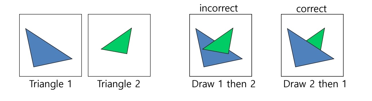 pixel shader에서 결정된 픽셀은 RGBA 이외에도 픽셀과 카메라 거리를 저장하는데, 이때 저장되는 버퍼를 depth buffer라고 한다.