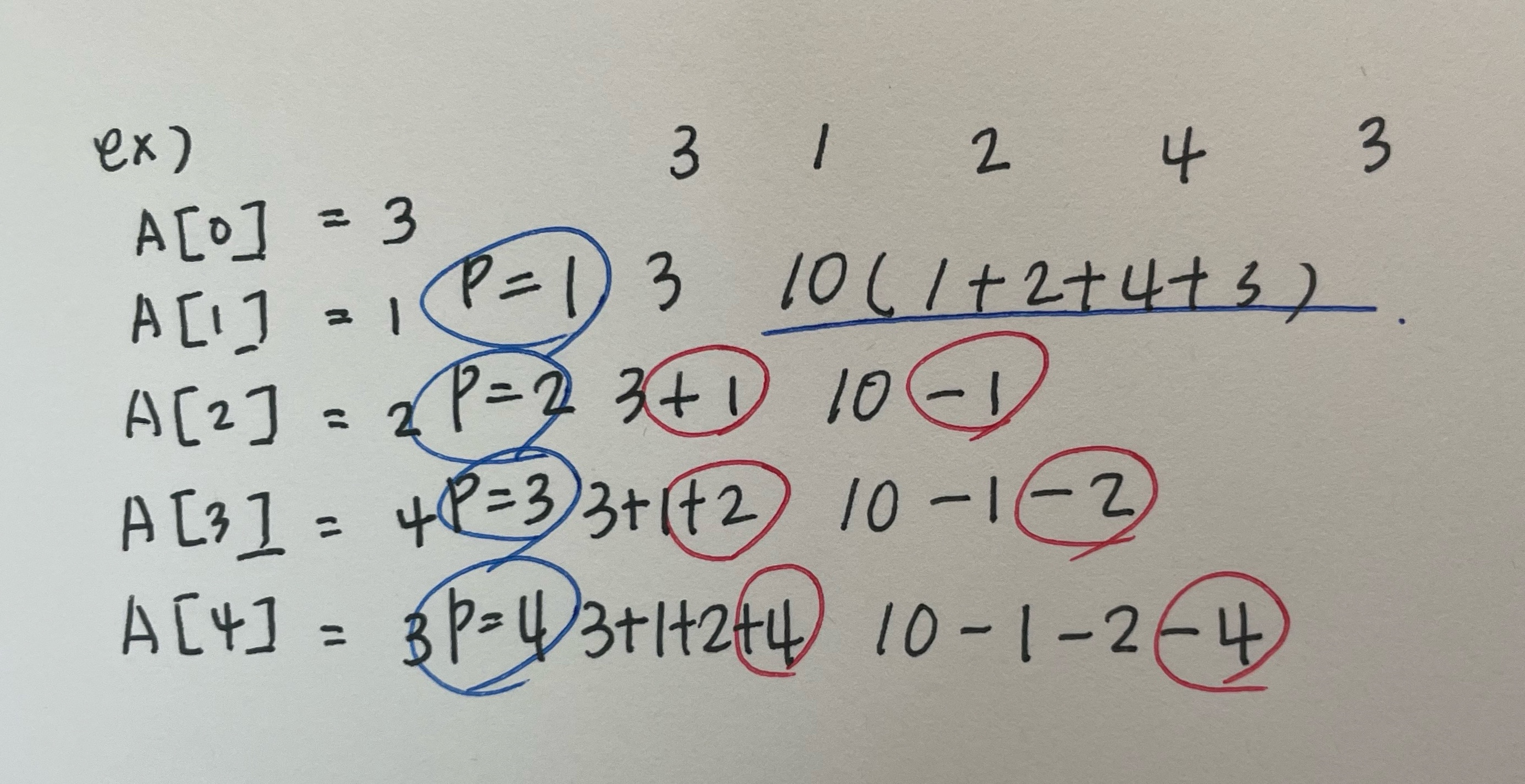 처음에 누적합(Prefix Sum)을 생각했는데, 범위에 음수가 포함되어있어서, 한번 풀이과정을 길게 늘려봤다.