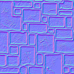 normal map을 사용하여 각 픽셀에서의 빛의 방향을 계산하여 diffuse texture에 적용시키면 아래와 같은 울퉁불퉁한 느김의 텍스쳐를 얻게 된다.